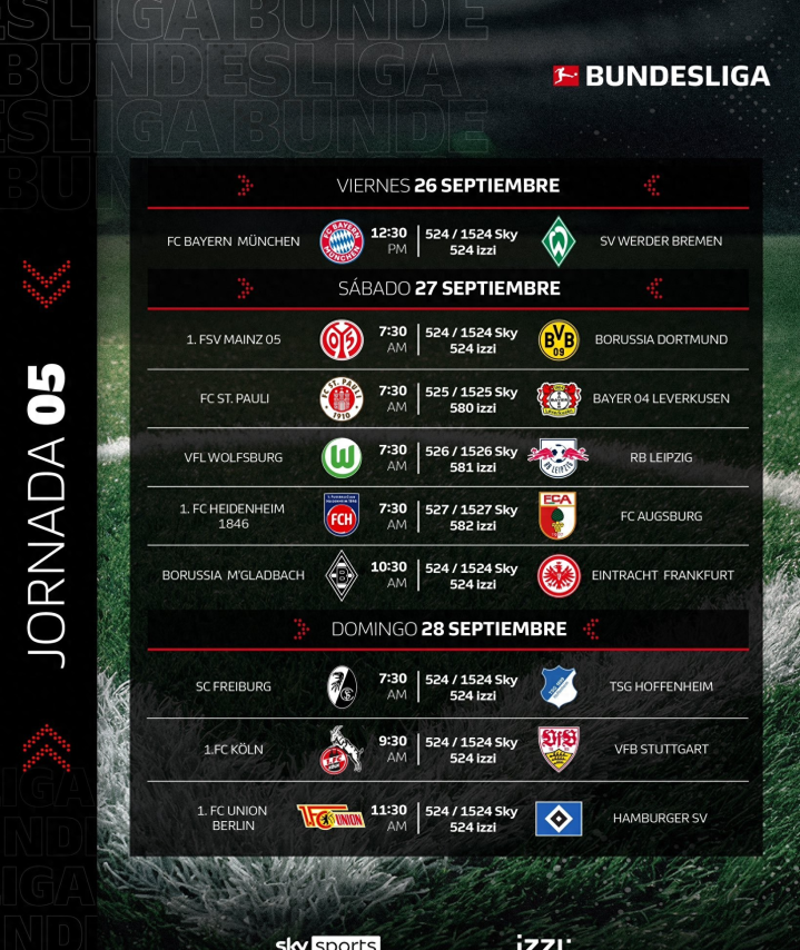 2025-2026赛季的德甲联赛第5轮的较量将在本周末正式开打。在本轮联赛中,拜仁将在主场迎战不莱梅,多特、药厂、莱比锡和汉堡在本轮则都是客场作战。