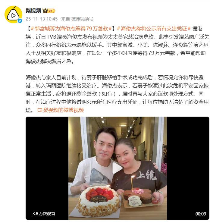 TVB演员海俊杰的一则求助视频,瞬间炸出了香港演艺圈最真实的人情味。他的太太莫家慈因急性肝衰竭命悬一线,急需在48小时内进行肝脏移植,而超过150万港元的巨额医疗费,成了这个家庭面前最冰冷的高墙。