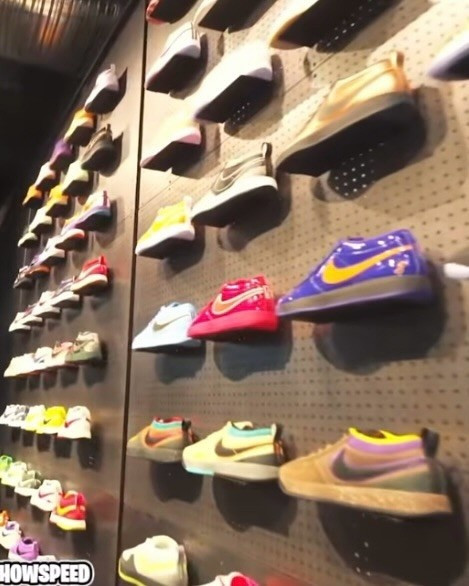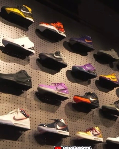 里面一面墙全部都是各种稀有球鞋,包括布克本人的PE、还有众多科比的稀有鞋款。除了球鞋,室内也摆放了众多布克喜爱的各种收藏级别的老爷车。